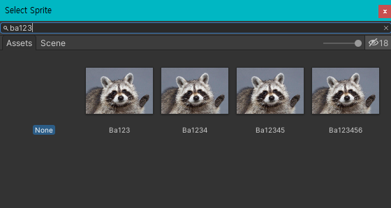 Unity 2020 LTS 최신버전에서 Sprite 선택창의 검색 결과에서 이미지 미리보기가 나오지 않는 버그가 있음